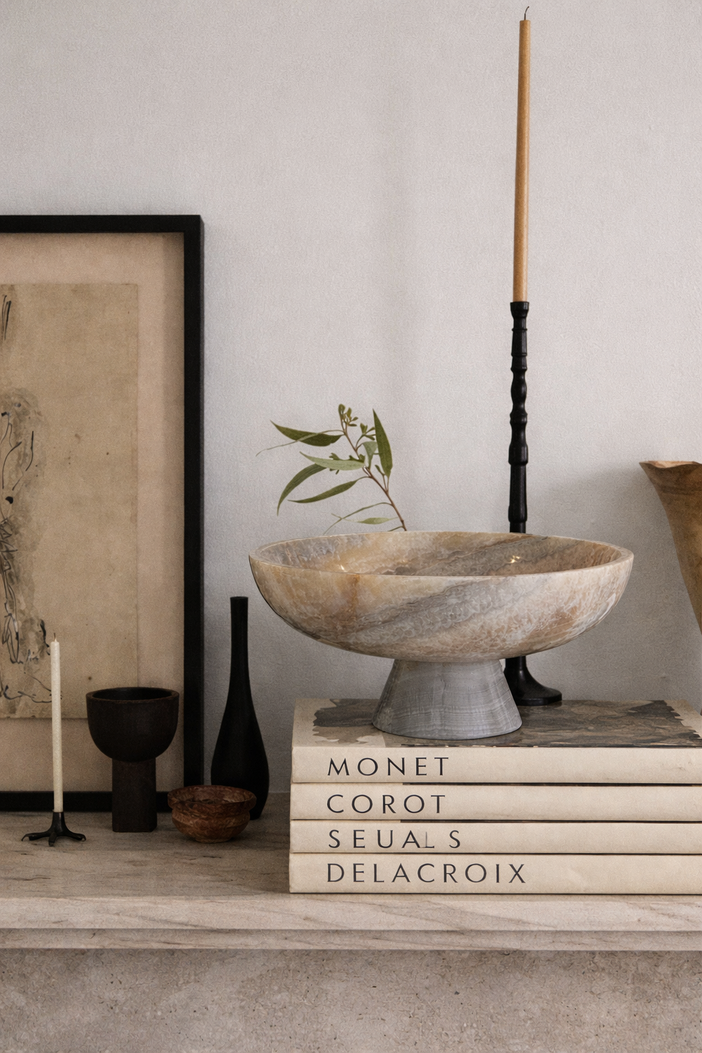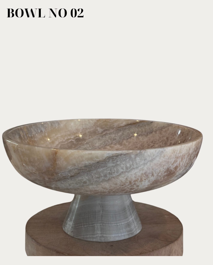 A sculptural pedestal bowl in cool-toned marble, designed to bring quiet weight and presence to a space. Each piece is handmade, with natural variations in tone and pattern that make every bowl one of a kind. 30 x 30 x 15 cm.